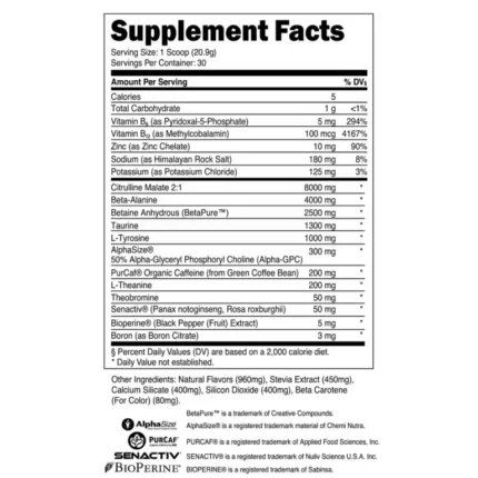 This stimulant-free vasodilating formula contains clinical doses of hyperemic ingredients, including patented NO3- T® arginine nitrate and betaine nitrate, Setria® reduced L-glutathione, AstraGin™, pine bark proanthocyanidins, and vitamin C. These ingredients go to work rapidly to bolster nitric oxide production and facilitate robust blood flow to skeletal muscle tissue during training, ultimately enhancing performance and recovery. Note: This product may be stacked with our Pre-Workout Powders for synergistic effects