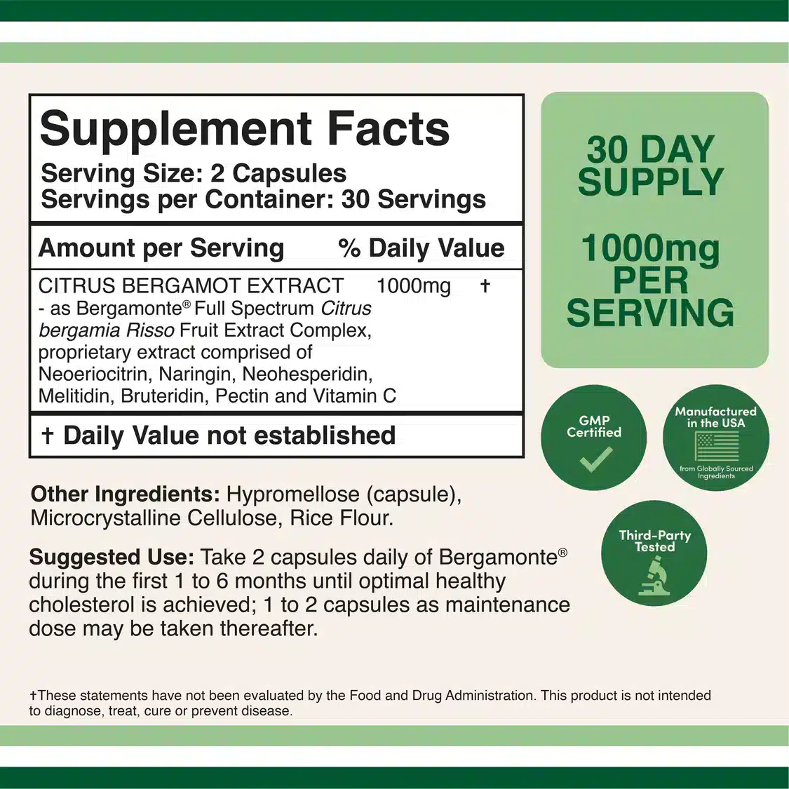 • Supports Healthy Cholesterol: Citrus Bergamot Extract supports healthy cholesterol levels.